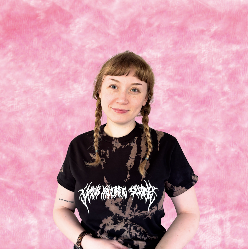 maybe your dad would like this? handprinted with water-based ink, wash inside out and hang dry for longevity :) print says YOUR FAVORITE SISTER in hand drawn, heavy metal font. shirt is bleach dyed for fun! mens S